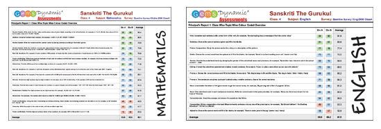 The Principal’s Reports shown here provide Topic Wise Strengths of all sections in each class (here, for example, for Division A & B of Class IV in mathematics). |